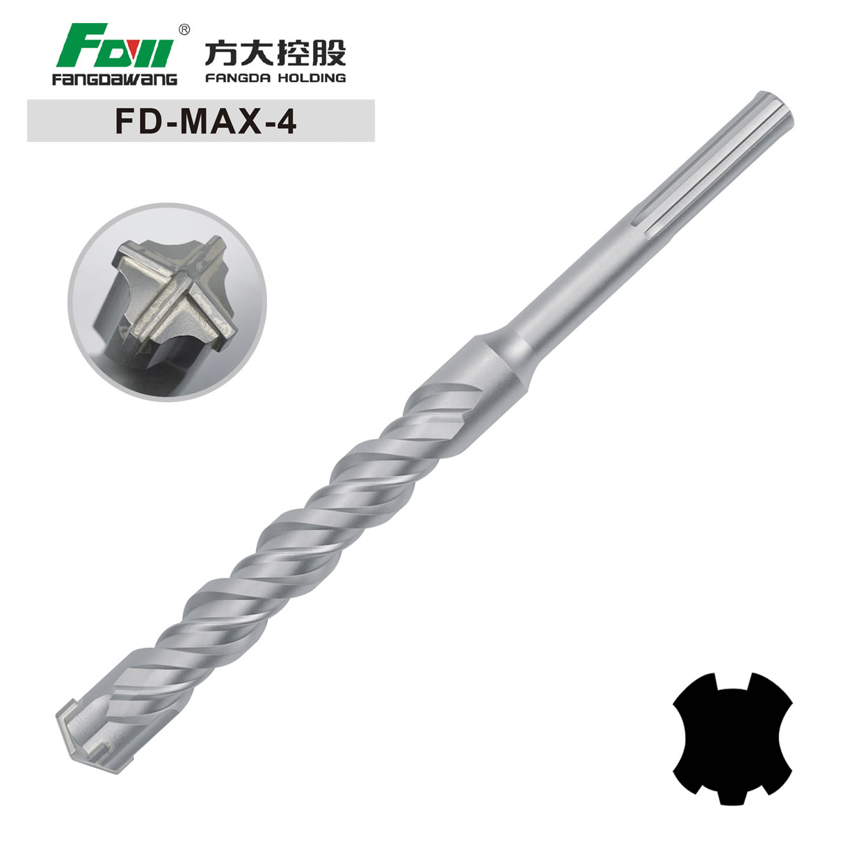 SDS MAX HAMMER DRILL BIT, W FLUTES, CROSS CUTTER